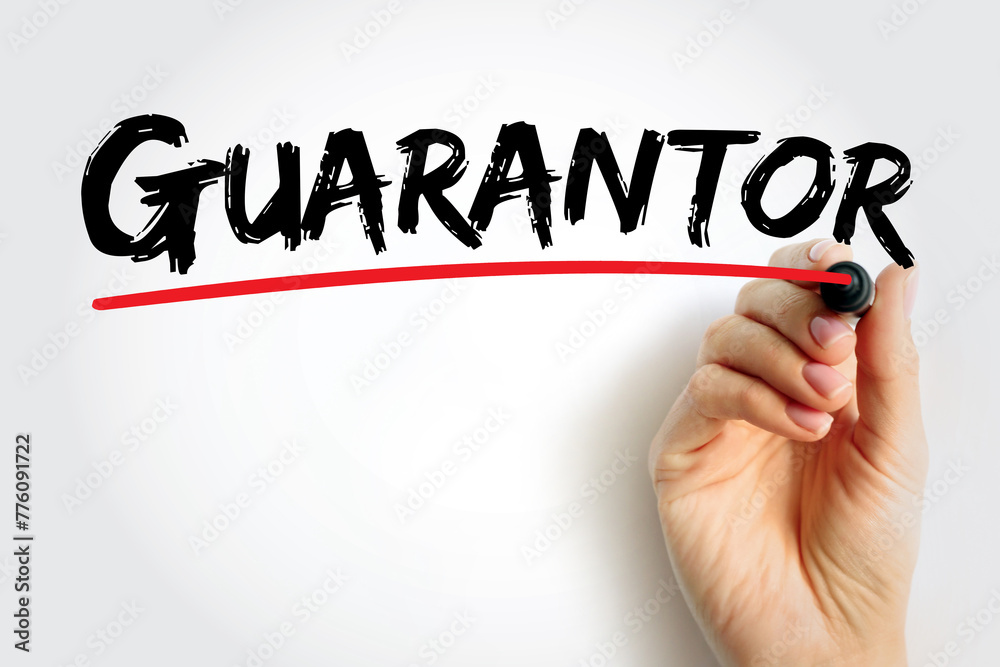 Guarantor - a person or thing that gives or acts as a guarantee, text concept background