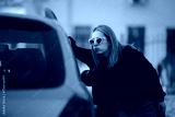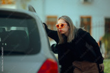 Woman Locked Out of her Car Looking Inside Confused. Stressed driver not being able to enter her own auto