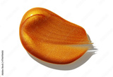 Golden cosmetic illuminating bronzer highlighter tan face body gel smudge on beige background