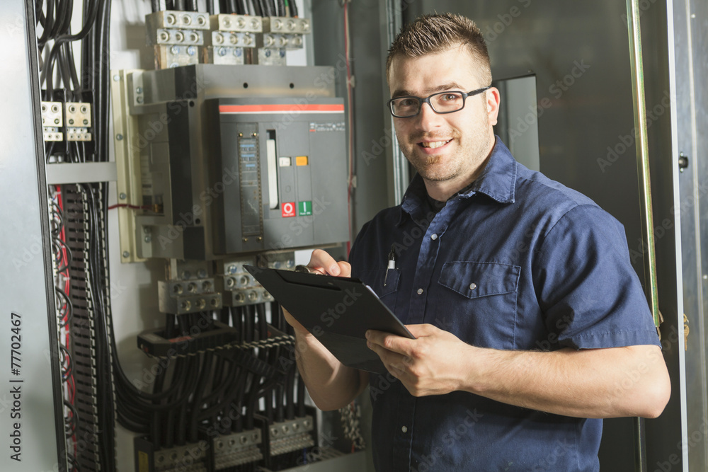Portrait of an happy worker in a factory