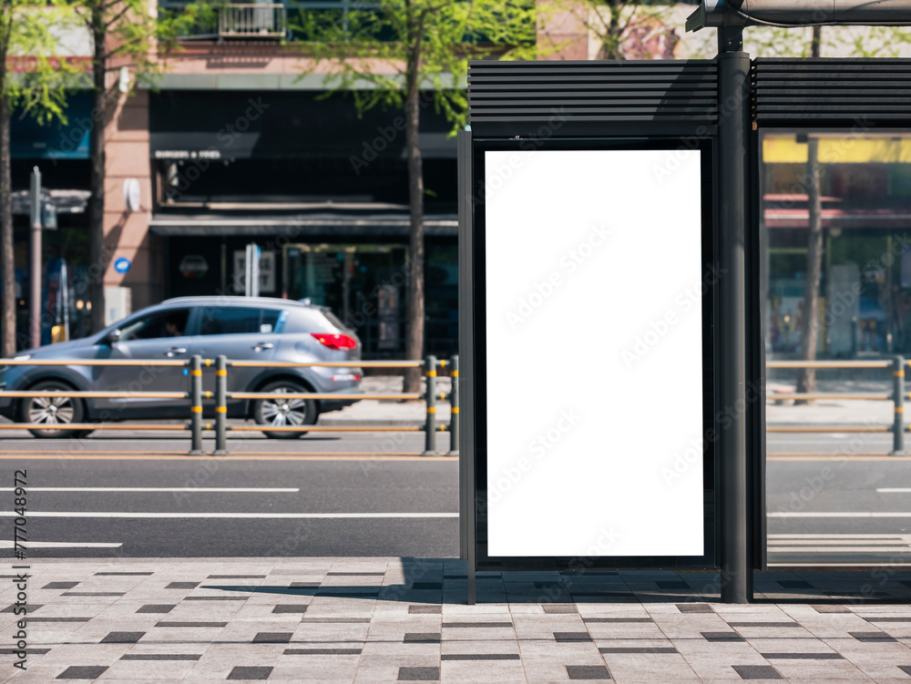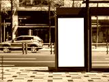 Mock up Banner signboard template at Bus Shelter Media outdoor street Sign display