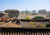 Seoul tower in City Cityscape with Korean house roof Art and culture
