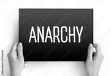 Anarchy - society being freely constituted without authorities or a governing body, text concept on card