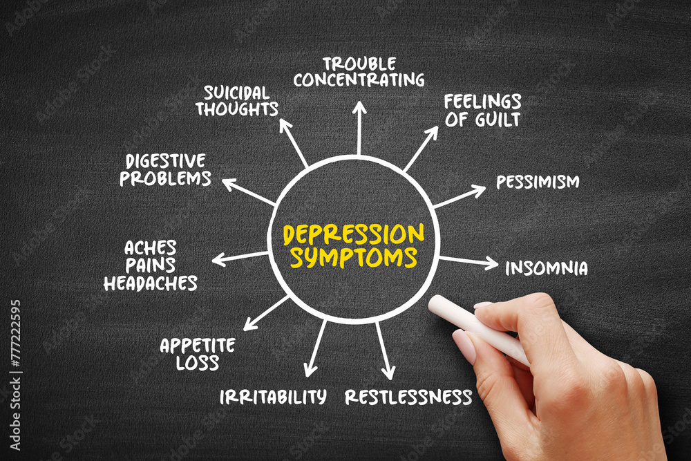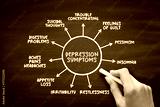 Depression Symptoms (serious medical illness that negatively affects how you feel, the way you think and how you act) mind map text concept background