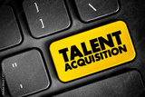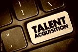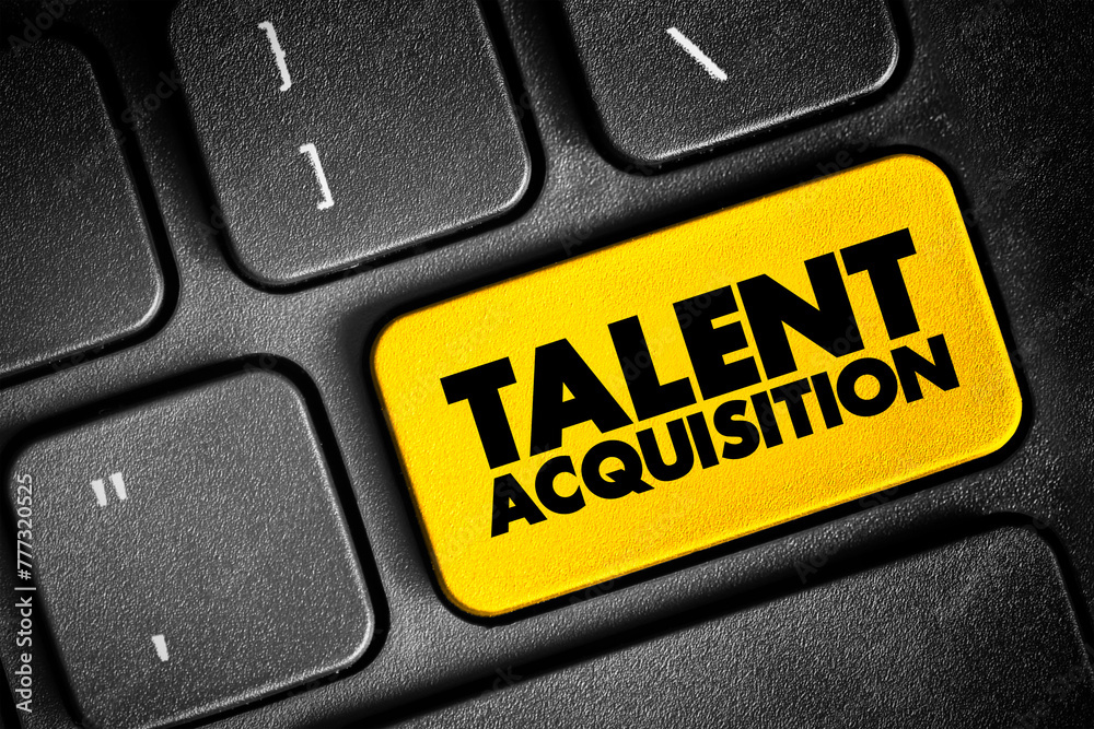 Talent acquisition - process employers use for recruiting, tracking and interviewing job candidates, text button on keyboard, concept background