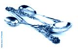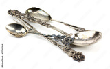 silver spoon and fork on a white background