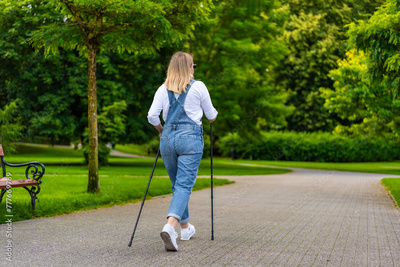 Nordic walking - woman exercising in city park