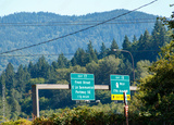 East-bound freeway signage on Interstate 90 in Issaquah, Washington