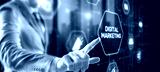 Digital online marketing. Analysis sale data graph growth on modern interface icons