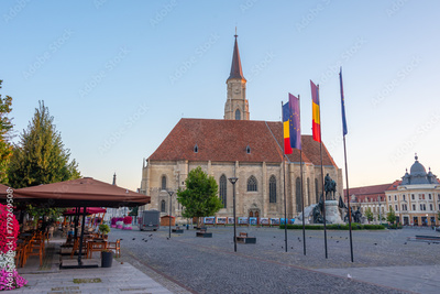 Sunset view of Saint Michael church in Cluj-Napoca, Romania