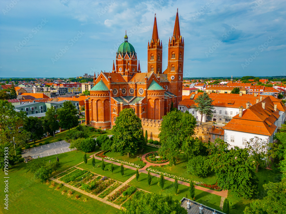 Aerial view of Saint Peter cathedral in Croatian town Djakovo