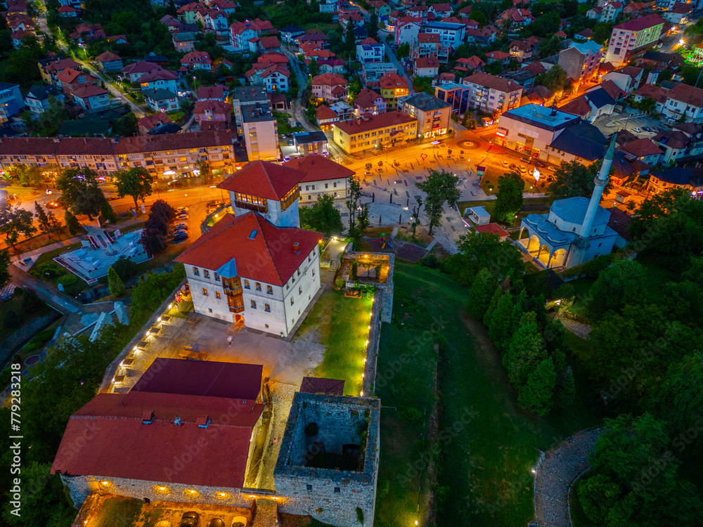 Sunset view of Gradacac castle overlooking the town in Bosnia and Herzegovina