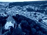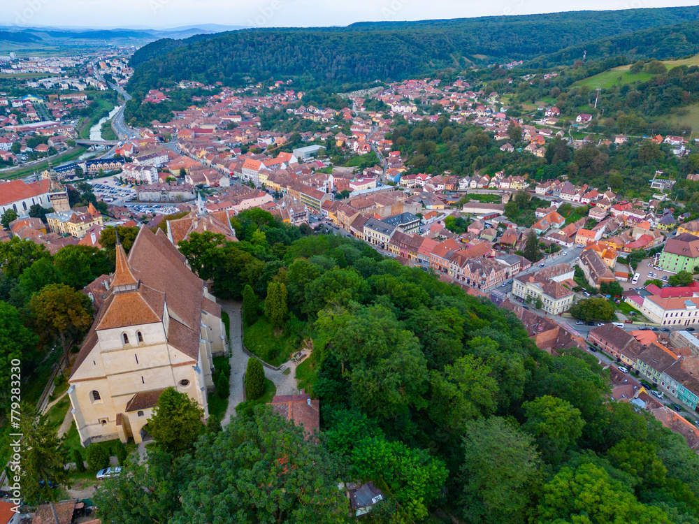 Sunset view of the church on the hill in Romanian town Sighisoara
