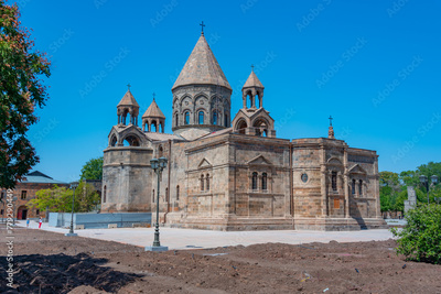 Etchmiadzin Cathedral during a sunny day in Armenia