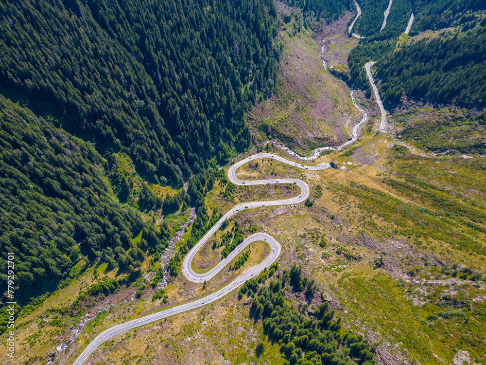 Transfagarasan road viewed during a sunny day in summer, Romania