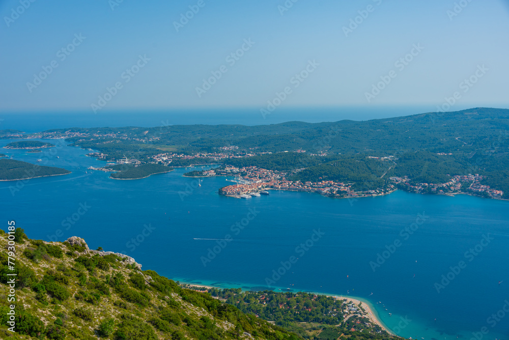Korcula island viewed from Sveti Ilija mountain at Peljesac peninsula in Croatia