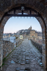 Sunset view of the Tsarevets fortress in Veliko Tarnovo during winter, Bulgaria