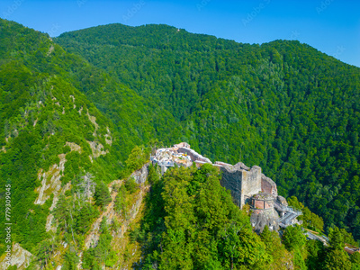 Panorama view of Poenari Citadel in Romania