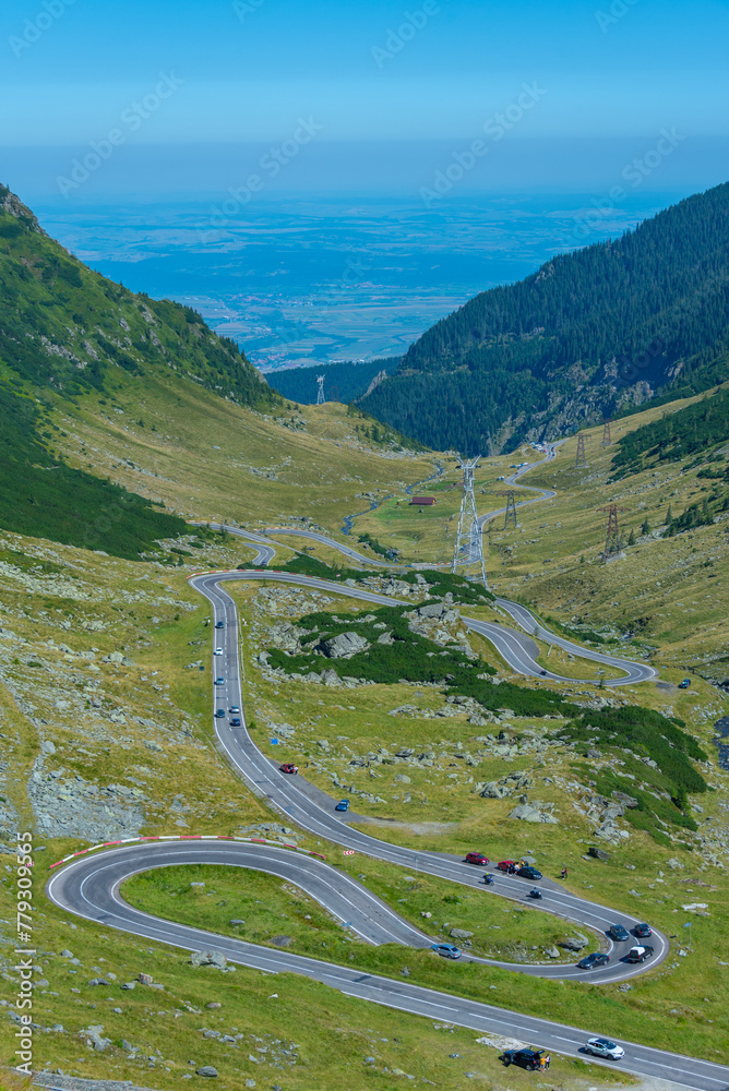 Transfagarasan road viewed during a sunny day in summer, Romania