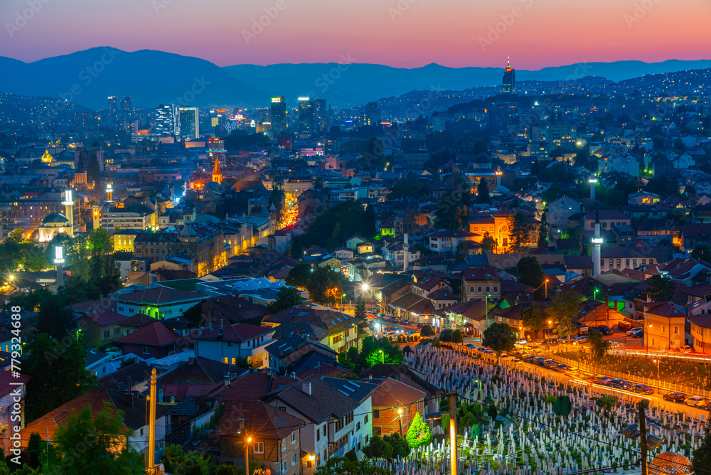 Sunset view of Sarajevo from the Yellow fortress, Bosnia and Herzegovina