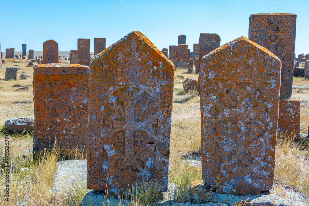 Noratus cemetery with Khachkars - ancient tombstones in Armenia