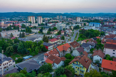 Sunset panorama of Bosnian town Doboj