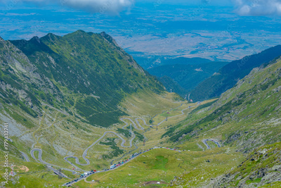 Transfagarasan road viewed during a sunny day in summer, Romania