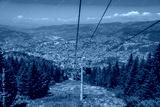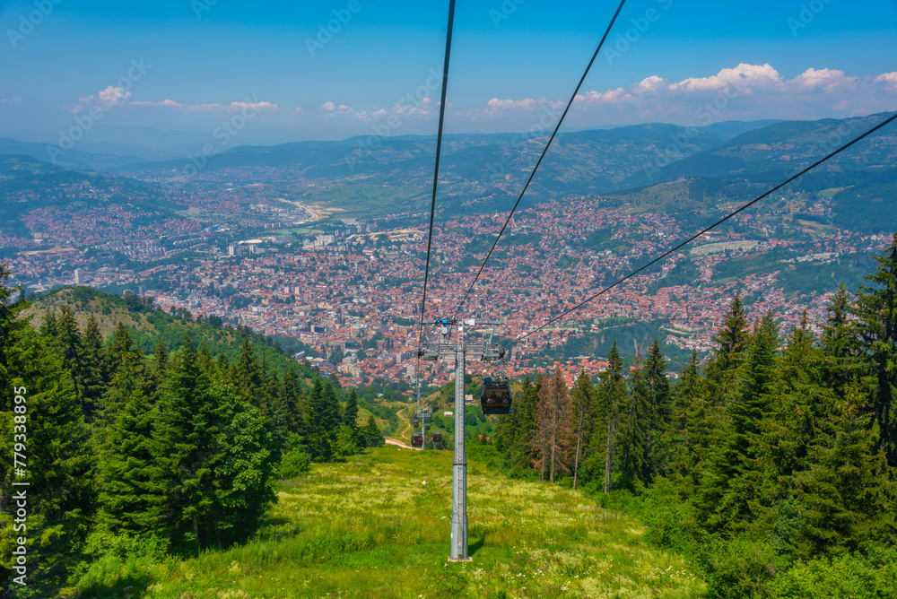 Trebevic gondola raising from the old town of Sarajevo, Bosnia and Herzegovina