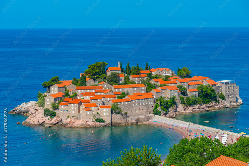 Panorama view of Sveti Stefan in Montenegro