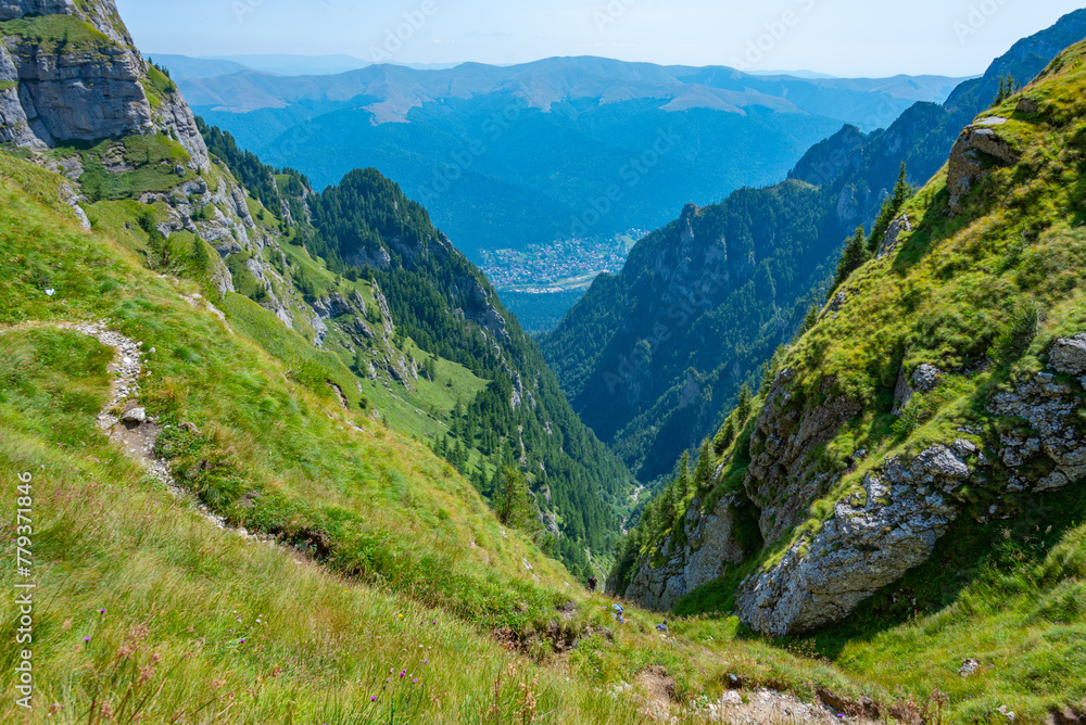 Summer day at Caraiman valley leading to Bucegi mountains near Busteni village in Romania