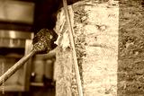 Turkish dish consisting of spiced lamb cooked on a spit and served in slices, typically with pita bread.