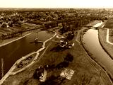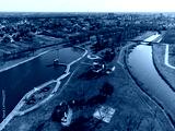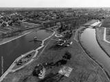 Drone aerial view of the Old Lake, Staro Jezero: serbian, Kikinda city, Serbia, Europe.