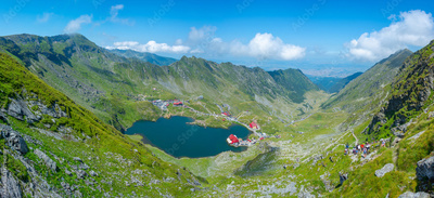 Transfagarasan road and balea lake viewed during a sunny day in summer, Romania