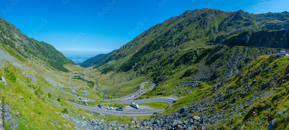 Transfagarasan road viewed during a sunny day in summer, Romania
