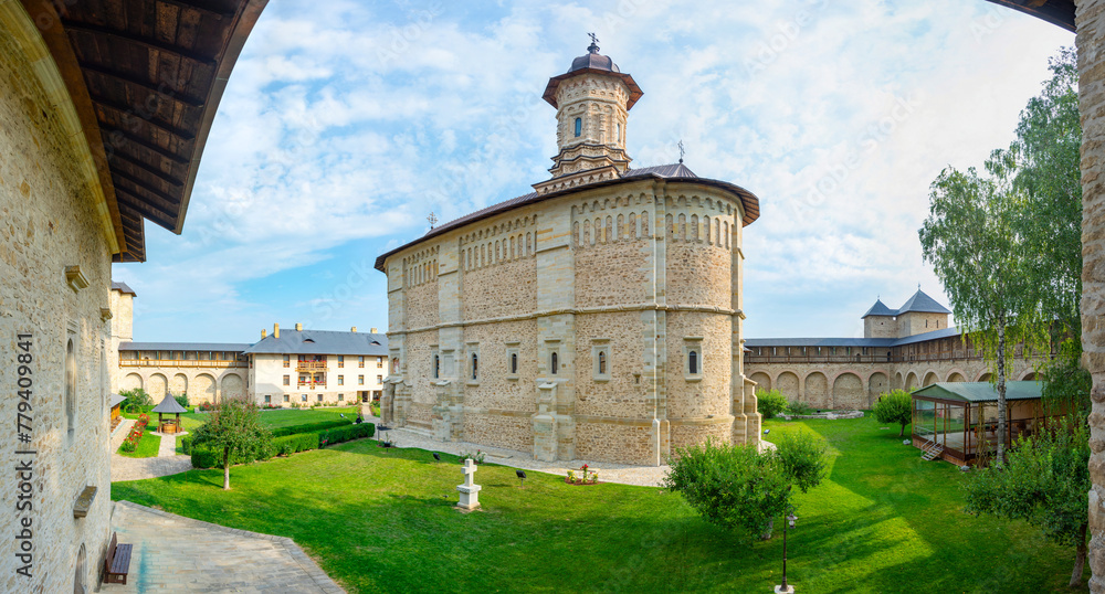 Dragomirna Monastery during a sunny day in Romania