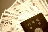 Light blue and red Japan Health Insurance cards on table with japanese residence card and my number card close up