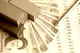 Global business container cargo ship in import export business logistic. Company shipping and logistics in Iran with rials money bills and pen close up