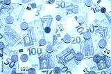 Many European euro money bills and coins. Lot of banknotes of European union currency close up