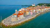 Aerial panorama view of Slovenian town Piran