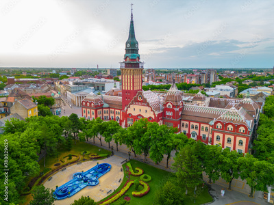 Aerial view of art nouveau town hall in Serbian town Subotica