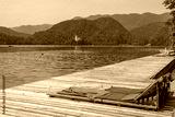 Assumption of Maria church at lake Bled viewed from the castle bathing area in Slovenia