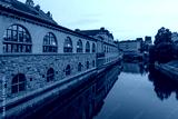 Covered marketplace at the side of river Ljubljanica in Ljubljan