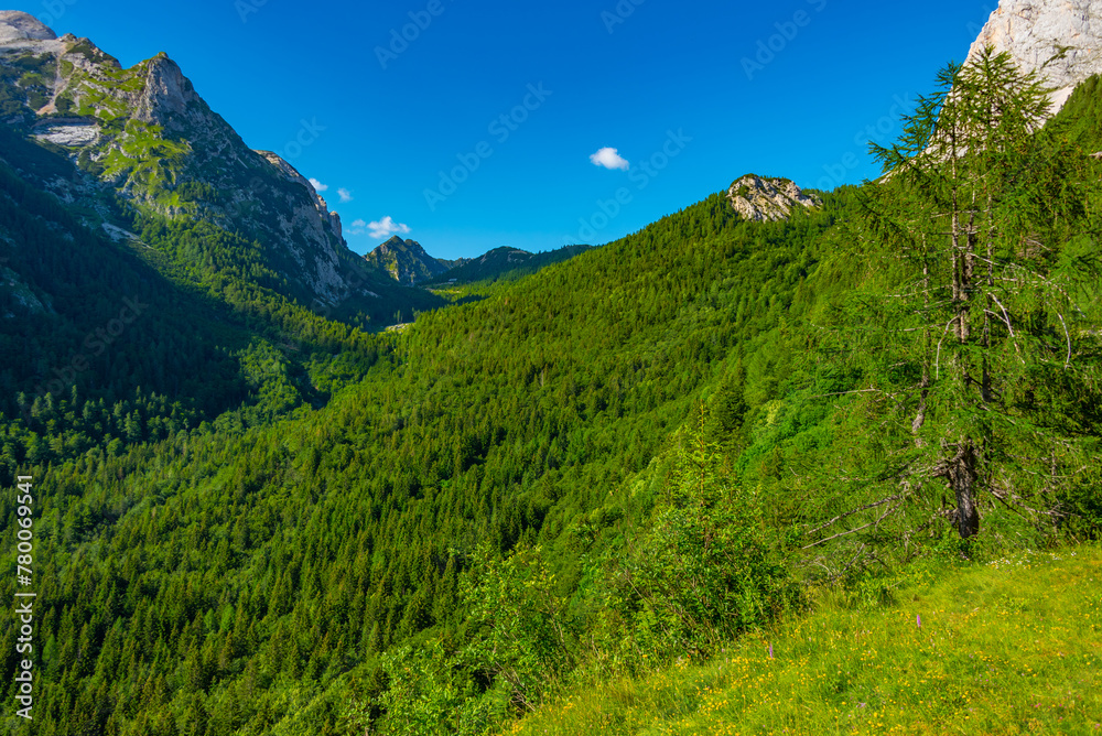 View over the Triglav national park from Supca viewpoint in Slovenia