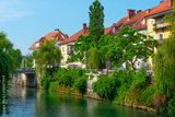 Riverside of Ljubljanica river in Ljubljana, Slovenia