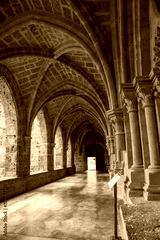 Serene Stone Archways of an Ancient Monastery Corridor