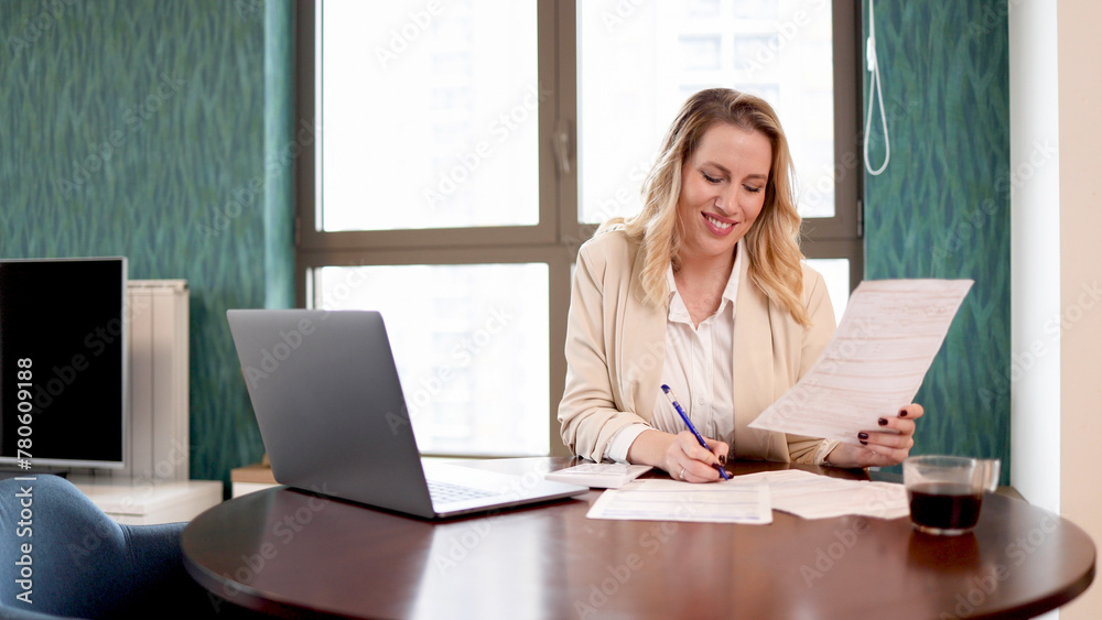 Mid adult woman managing her finances at home