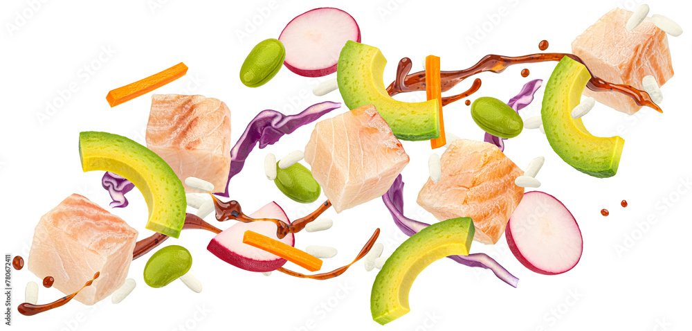Poke ingredients isolated on white background