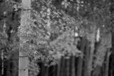 Red maple tree leaves in a Japanese garden with bamboo tree in background.