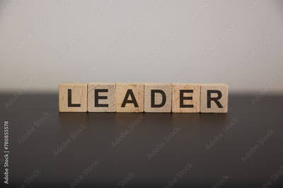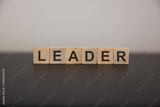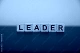 Leader symbol. Concept word Leader on wooden cubes. Businessman hand. Beautiful pink background. Business and Leader concept. Copy space.