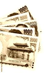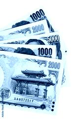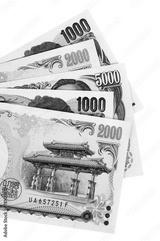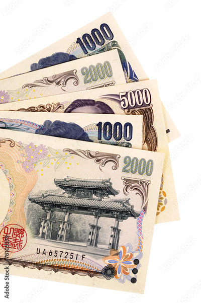 Various different japanese Yen money currency bills or notes isolated white background photo